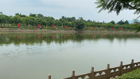 一帶澄澈碧綠的河水緩緩流淌,岸邊樹木蔥蘢、綠草如茵。有畫者在依河寫生,有行者在閑適漫步,不遠處嘹亮悠長的嗩吶聲隨風飄揚。