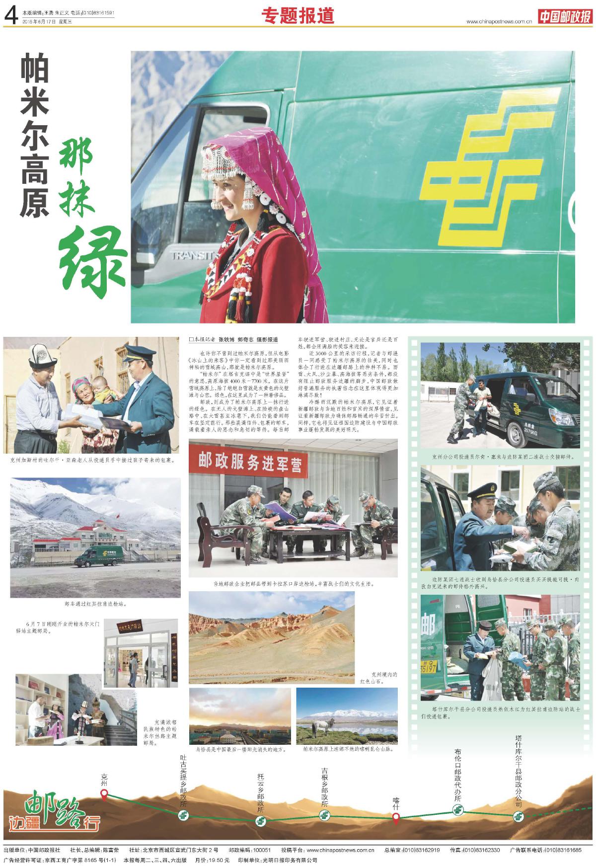 • 帕米爾高原的“綠”里,藏著家國的暖天山腳下紅旗獵獵,各式瓜果飄著蜜香,新疆維吾爾自治區(qū)成立70周年的喜慶正順著帕米爾高原的風(fēng)漫過“萬山之祖”的脊梁。中國郵政報(bào)“再走邊疆郵路”新疆段的采訪來到喀什地區(qū),讓我們沿著承載“家與國”“情與暖”的...