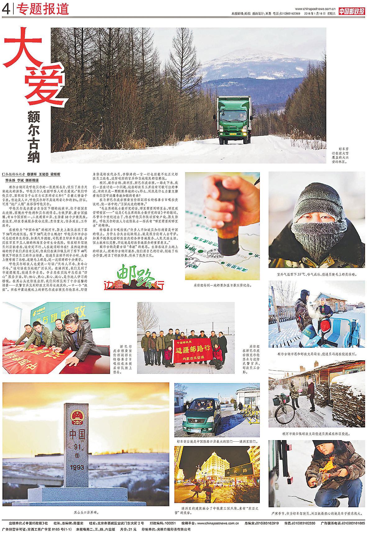 • 北國之“光”白山莽莽,黑水湯湯。2015年,中國郵政報(bào)“邊疆郵路行”采訪組沿著銀裝素裹的大地、河流,記錄下黑龍江郵政人堅(jiān)守的身影和奮斗足跡。十年間,隨著“高質(zhì)量”成為時(shí)代發(fā)展的主旋律,全面振興、全方位振興的號(hào)角響徹龍...