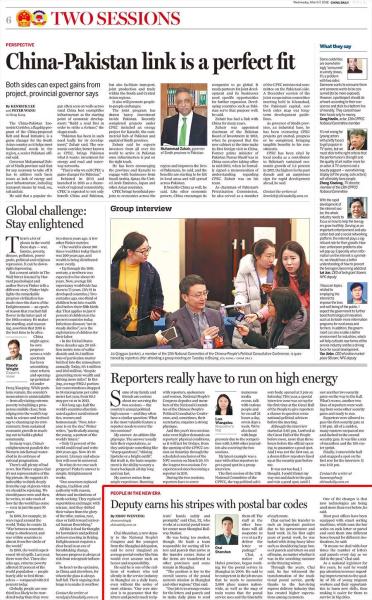 在記者的幫助下,柴閃閃認(rèn)真閱讀了《CHINA DAILY》關(guān)于他的報(bào)道,“honor and responsibility”,他說,這兩個(gè)詞語用得非常貼切,作為一名人大代表,確實(shí)得到了崇高的榮譽(yù),但同時(shí),肩上也擔(dān)負(fù)著沉甸甸的責(zé)任。