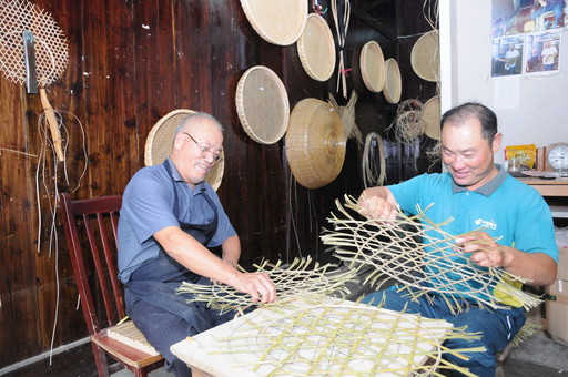 進(jìn)入“非遺”文化館,王曉豐的話明顯多了起來:“父親的店以前在鎮(zhèn)東頭,搬到這兒也是近兩年的事兒。你們看這些大大小小的竹編制品,有果品盤、飯罩、魚簍等。我祖上就是做竹編的,父親從小就耳濡目染學(xué)習(xí)竹編。竹編從選竹、鋸竹、破竹到編織、刷磨,再到竹編成品,一套流程下來10多個(gè)步驟都是他親自完成,一個(gè)成品少則需要三五天,多則要幾個(gè)星期甚至一個(gè)月。”王曉豐搬了張小凳坐在父親身旁,“我平時(shí)工作忙,難得有空過來。”