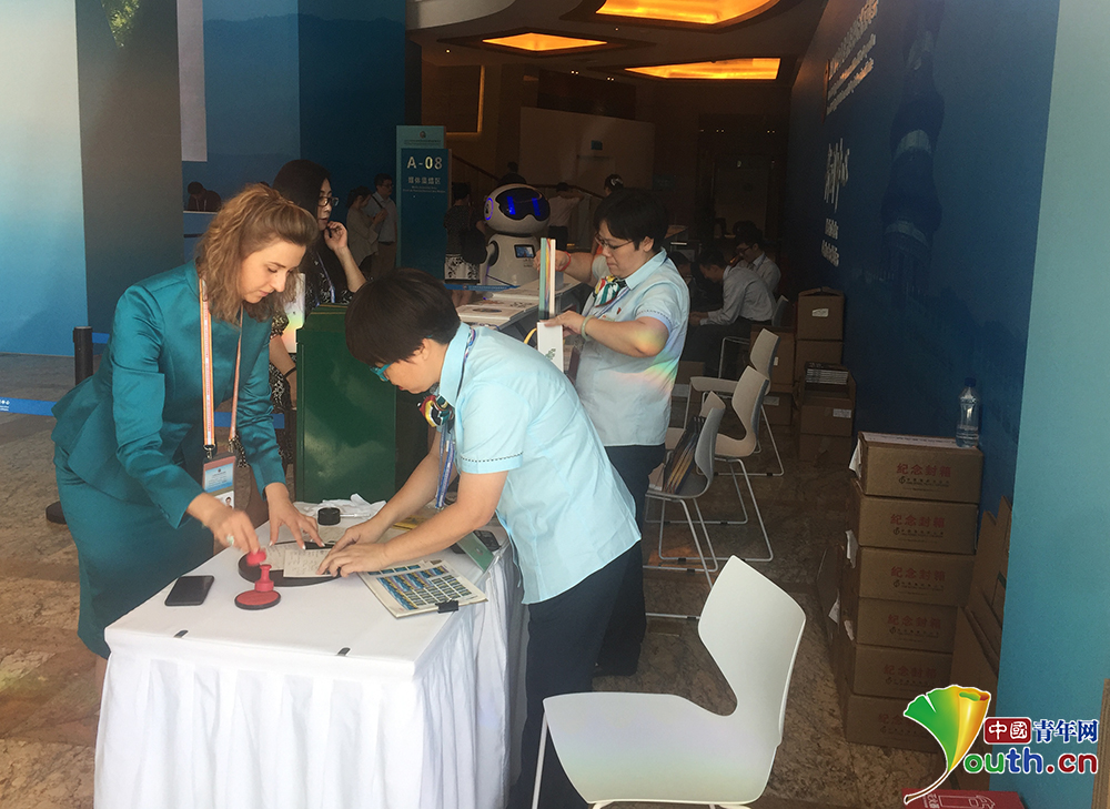 陳蘭穎說,這位記者朋友非常喜歡中國(guó)文化,為了給此次峰會(huì)留個(gè)紀(jì)念,他挑選了許多張不同畫風(fēng)的明信片寄給親友。“這個(gè)是什么?”一張主圖為天壇圖案的郵票深深吸引了路透社記者。“這個(gè)是天壇,中國(guó)老祖宗祭天神的地方。”陳蘭穎一聽這個(gè)外國(guó)朋友會(huì)說些中文,便饒有興趣地向他介紹了一番。在陳蘭穎的幫助下,路透社記者將每張明信片貼好郵票,寄給世界各地的親友。臨走時(shí),他向陳蘭穎豎起大拇指。