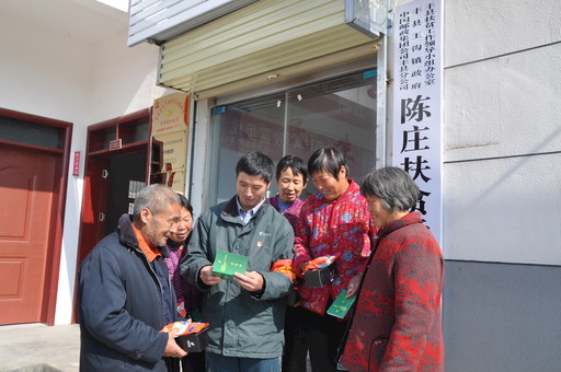 11月9日,江蘇省徐州市豐縣郵政分公司啟動了黨建扶貧項目,并組織了以趙本增為“領頭雁”的黨員志愿者隊伍深入到與豐縣分公司簽訂扶貧合作協議的陳莊村進行走訪調研,了解貧困人口比重、農作物品種、貧困戶致貧原因等,并將趙本增“勞模工作室”作為黨建扶貧工作室與該村黨支部緊密聯系,確?!包h建扶智、精準扶貧”政策落地。圖為黨員志愿者在調研的同時向貧困戶介紹“扶貧會員證”的用法。 □陳海彬 攝影報道