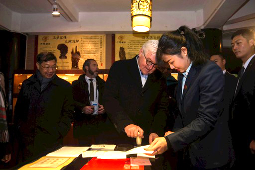 據了解,施泰因邁爾于12月5~10日對中國進行國事訪問,這是施泰因邁爾于2017年3月就任德國總統以來的首次訪華,四川是他此訪的第二站。都江堰市分公司作為此次唯一受邀的文創產品布展商,在秦堰樓二樓整層展示了熊貓之鄉都江堰明信片、《熊貓都江堰》郵冊以及《紅樓畫中郵》郵冊等共計30余種郵品?! 觚垙埥?nbsp; 范毅 攝影報道