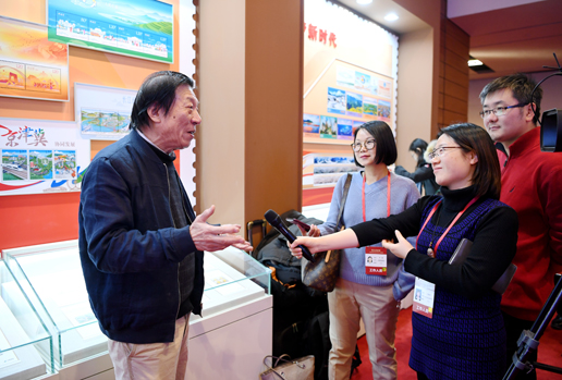 一說到郵票,兩位老者的話匣子就打開了。“郵票作為‘國家名片’,意義非常重大,但設計難度也大,一般來說,藝術家喜歡揮灑,喜歡在創作中發揮自己的想象力,但恰恰郵票設計具有嚴謹的科學性。”許仁龍介紹,在《長城》郵票中,地理方位一點都不能馬虎,長城的敵樓上有幾個射箭孔都要有出處、有講究;此外,郵票設計還要進行嚴謹的歷史考證,長城綿延一萬多公里,經過那么多省、市,沿途取景就需要仔細推敲,聽取專家意見,最終還要畫成一個藝術作品。“在設計郵票時要充分體現藝術巧妙的融合性,要突破時空,令人有身臨其境之感,這又是一個難點。”時隔兩年,許仁龍回憶起郵票創作過程還是感受頗多,“長城是改革開放的一種精神象征,中國郵政將它繪制成郵票長卷是一種突破。現在,這套郵票長卷在‘偉大的變革’展覽中展出,我深感榮耀和自豪,在此也要感謝改革開放給我們藝術創作帶來的新氣象。”