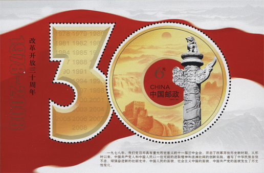 《改革開放三十周年》紀念郵票小型張
