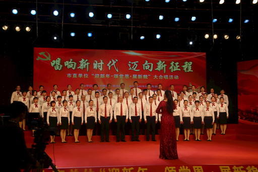 2018年12月16日,廣東省梅州市郵政分公司黨委組織機關、市屬單位的60名黨員和普通員工參加了梅州市委舉辦的“唱響新時代·邁向新征程——2018梅州市‘迎新年·頌黨恩·展新貌’”大合唱比賽。比賽中,梅州郵政員工用《不忘初心》《走向復興》兩首新時代歌曲,展示了梅州郵政走在新時代的新作為、新擔當、新風貌?!蹶悋t 攝影報道