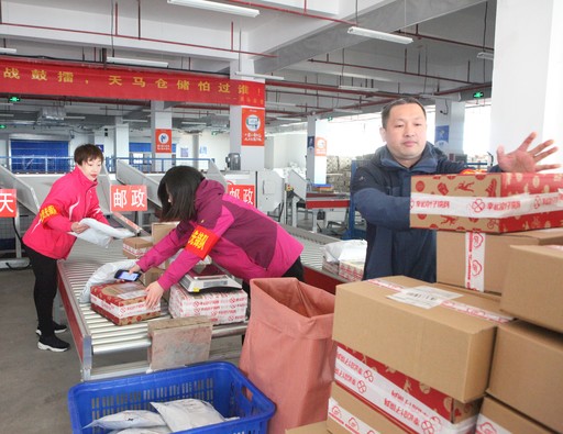 近日,江蘇省連云港市郵政寄遞事業(yè)部快遞包裹部的黨員組成黨員先鋒隊(duì),來(lái)到快包大客戶天馬云倉(cāng)收寄現(xiàn)場(chǎng),幫助一線員工收寄郵件。寒冷的天氣絲毫沒有影響黨員們的服務(wù)熱情,他們有的搬運(yùn)、有的掃描郵件,干得熱火朝天。有了黨員的助力,收寄效率明顯提高。  □薛駿慧  攝影報(bào)道