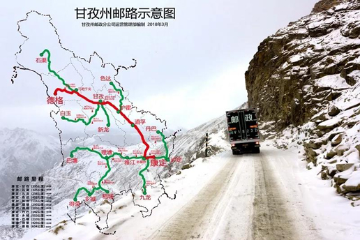 甘孜州郵路示意圖