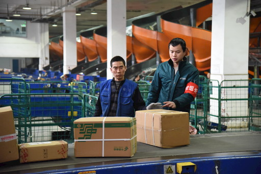 1月23日,雙流郵件處理中心作業(yè)現(xiàn)場有條不紊運行著,員工們小心翼翼分揀處理包裹。