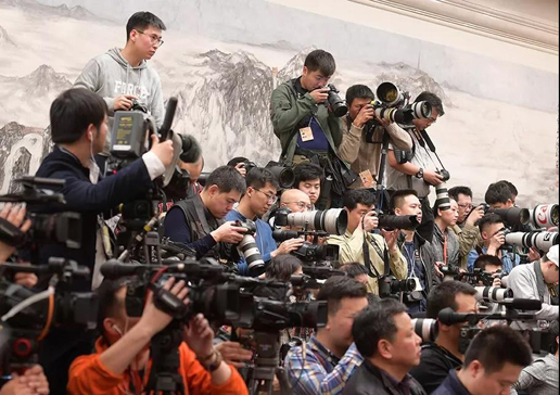 為了能夠拍攝到好照片、采訪到委員,各媒體的小哥哥小姐姐們可謂絞盡腦汁,有的記者帶了簡直比高蹺還要高3厘米的梯子,有的記者笑臉如花,先把問題拋出去,話筒遞上去,根本不給政協委員拒絕的機會。有的政協委員剛接受完采訪,第二波記者又來了,一波接著一波。