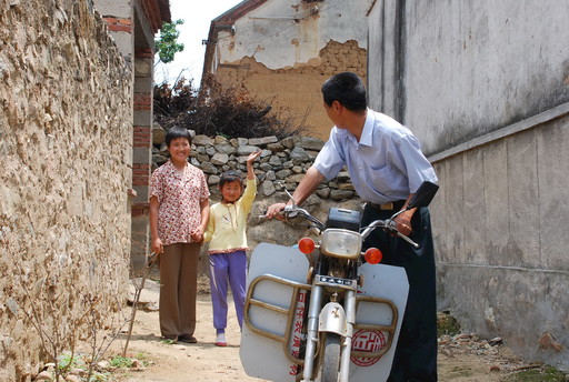 徐西國1990年參加郵電工作,2004年加入中國共產黨。他所在的泰安市下港鄉,面積155平方公里,下轄34個行政村、182個自然村,境內擁有大小山峰200余座,全鄉1萬多戶、4萬多村民,分布在大山深處的溝壑之中。在郵車還不能直達下港的那10年間,他負責外出接郵車并將郵件帶回局里,全年365天,他要往返364次,只有大年初一這一天是他的休息日。無論是酷暑還是嚴冬,如今,47歲的他已經在平凡的鄉郵路上跋涉了28個春秋,先后騎壞了3輛自行車、3輛摩托車,剛剛騎了一年多的摩托車,里程表上早已突破了五位數。