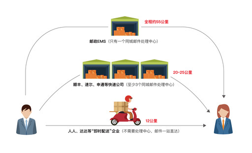 傳統快遞與“即時配送”模式對比。