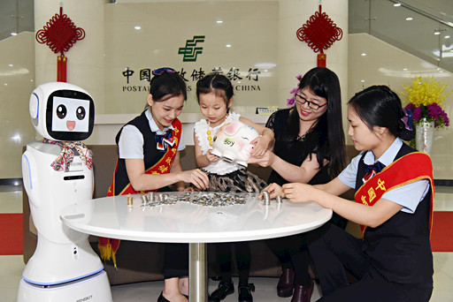 圖為帶著存錢罐的小姑娘在母親的陪同下到現(xiàn)金服務(wù)站兌換零散鈔。 □海南記者 梁磊 攝影報道