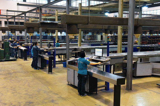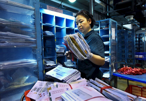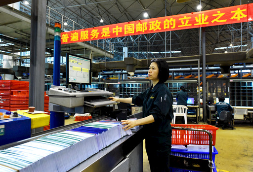 現(xiàn)代郵政自動化水平已經(jīng)很高,但手工分揀仍然是必要和有益的補(bǔ)充,圖為郵件處理中心外景。