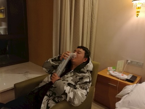 會呼吸的痛:高原反應嚴重的田然在吸氧。