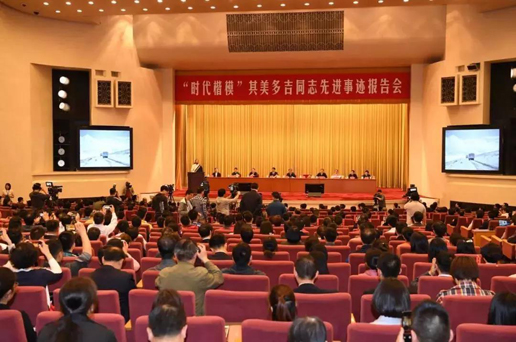 4月18日,中共中央宣傳部、交通運輸部、中共四川省委聯合在京舉行其美多吉先進事跡報告會,學習宣傳“時代楷?!逼涿蓝嗉冗M事跡和高尚品格,來自中央企業系統、交通運輸行業、中國郵政集團公司的干部職工代表和首都各界群眾代表等700多人在現場聆聽報告會。