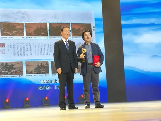 國(guó)家郵政局局長(zhǎng)馬軍勝、中國(guó)郵政集團(tuán)公司董事長(zhǎng)劉愛(ài)力為優(yōu)秀郵票獎(jiǎng)獲獎(jiǎng)?wù)哳C獎(jiǎng)。