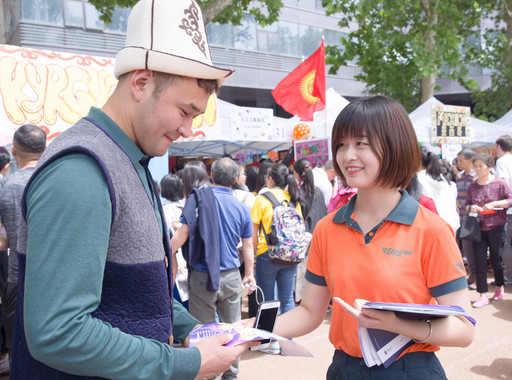 5月19日,在北京語言大學(xué)校園內(nèi)的梧桐大道上,來自90多個國家和地區(qū)的近千名北語青年學(xué)子,與社會各界人士歡聚第十六屆北京語言大學(xué)世界文化節(jié)。北京市海淀區(qū)郵政寄遞事業(yè)部組織工作人員走進北語世界文化節(jié),宣傳EMS國際業(yè)務(wù),展示了EMS的品牌形象。 □北京記者 吳玉蘭 通訊員 隋源 攝影報道