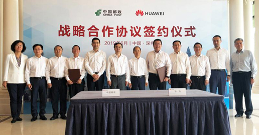 6月5日,中國郵政集團公司與華為公司簽署戰(zhàn)略合作協(xié)議。中國郵政集團公司董事長劉愛力、總經(jīng)理張金良與華為公司輪值董事長徐直軍出席儀式,中國郵政集團公司副總經(jīng)理溫少祺與華為公司副總裁兼中國區(qū)總裁魯勇代表雙方簽署了協(xié)議。