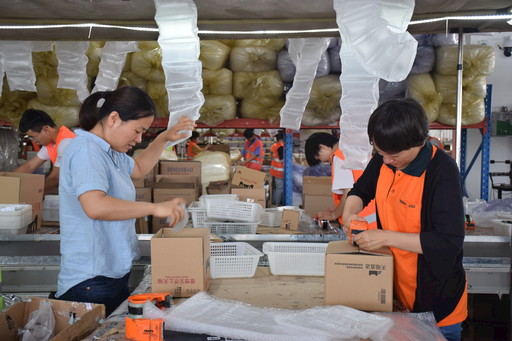 6月,河北省郵政寄遞事業部電商分公司迎來了一年一度的“天貓年中大促活動”。此次活動分為兩個階段,第一階段活動時間為6月1日至3日,第二階段活動時間為6月16日至20日,累計完成訂單量37.8萬件。圖為在業務高峰,電商分公司客服組與質控組員工來到質檢包裝組協助處理郵件?!醮扌聣?nbsp; 攝影報道