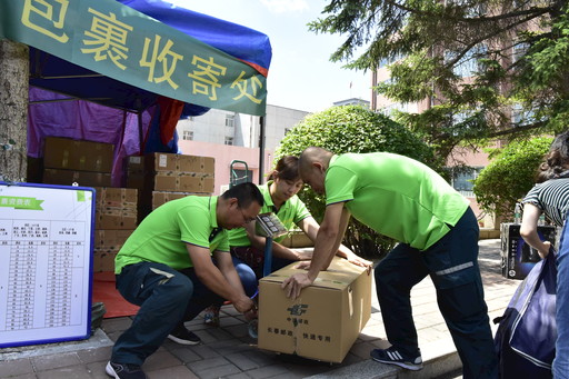 6月中旬,吉林省郵政分公司啟動畢業季校園包裹項目,選派專職攬收員進駐校園,為畢業生提供免費上門取件、包裝等服務。該分公司還利用線上掃碼自助下單平臺,提高電子面單使用率,同時宣傳郵政包裝箱綠色、環保、可循環性,助力綠色郵政建設。圖為郵政工作人員在吉林大學校園內設點收寄畢業生包裹 □吉林記者 郭慧婷 通訊員 孫作偉 攝影報道