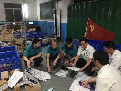2018年7月1日,帶著這一課題,職能部室黨員劉松釗、曾俊軍以掛靠方式派駐到石牌投遞部黨小組。平日里,他們與攬投員一起上門攬件、打包、裝車,在充分掌握基層網點生產情況的基礎上,提出對大客戶寄遞的輕小件采取直封和集包的建議。