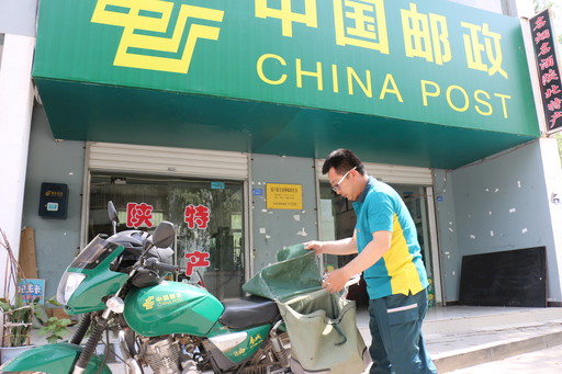 延安郵政投遞員整裝待發(fā)。