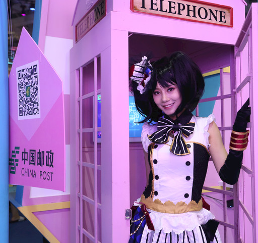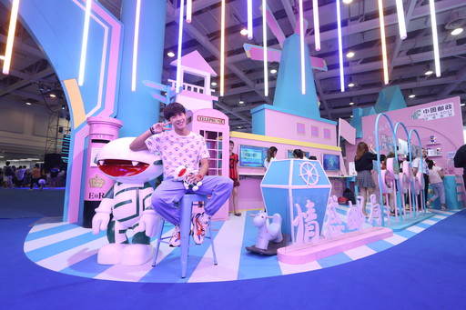 以淺藍(lán)、粉紅為主色調(diào)的郵政展區(qū)撥動(dòng)了無(wú)數(shù)少女的心,cosplay模特也前來(lái)體驗(yàn)。