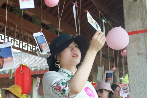 2019岳陽七夕國際愛情文化節暨“緣定君山、愛You樂行”湘鄂贛三地相親大會在湖南省岳陽市君山島啟幕。來自湖南岳陽、湖北咸寧、江西九江的500余名未婚男女現場真心尋愛。活動由岳陽市政府主辦,岳陽市文化旅游廣電局、岳陽市廣播電視臺承辦,岳陽市郵政分公司特別協辦。岳陽市分公司以此活動為契機,助力地方旅游產業高質量發展,開設君山島愛情郵局并于當天開門營業。活動現場,500余名嘉賓參與了“愛YOU樂行 為愛打卡”“把美麗岳陽寄出去”活動,在為愛留言區、為愛留念區,嘉賓有的忙著書寫明信片留下愛的宣言,有的忙著為紀念封加蓋紀念戳,留下愛的紀念;在游戲區,嘉賓積極參與猜謎語、為愛拼圖等游戲(見圖),熱鬧非凡,氣氛熱烈。