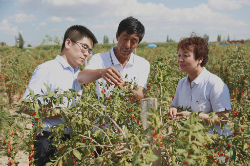 郵儲銀行信貸客戶經(jīng)理了解枸杞長勢,扎實開展貸前調(diào)查。