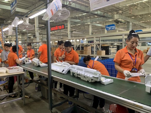 山東郵政為海爾企業提供綜合型物流服務。圖為膠州空調二期的工作人員正在組裝空調產品內機送風模塊。崔鵬森  攝