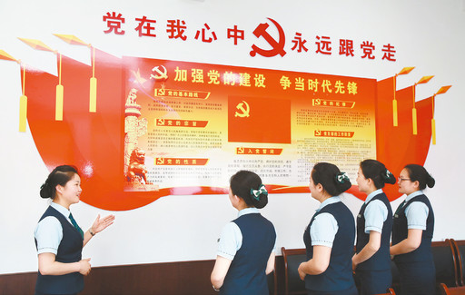 入黨積極分子在肇源縣分公司黨建室觀摩學(xué)習(xí)。