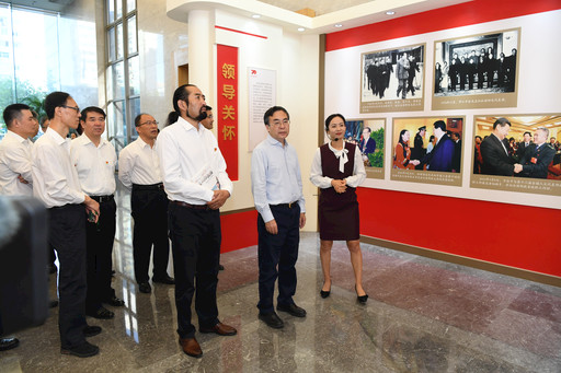 集團(tuán)公司領(lǐng)導(dǎo)與“時(shí)代楷模”、全國(guó)道德模范其美多吉一同觀展。記者 朱正義 攝