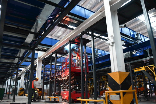 自10月中旬起,湖南省郵政分公司啟動(dòng)長(zhǎng)沙郵區(qū)中心局郵件處理中心集包作業(yè)工藝設(shè)備配備工程建設(shè)。長(zhǎng)沙中心局維護(hù)人員全員停休,按照現(xiàn)場(chǎng)施工的要求,每天安排5至7名技術(shù)人員參與工程建設(shè),協(xié)助廠方進(jìn)行線路布設(shè)、膠帶機(jī)設(shè)備拆裝、滑槽組裝、安防設(shè)施安裝等工作。據(jù)悉,設(shè)備改造后將增加4個(gè)卸車口、10個(gè)直連裝車口,預(yù)計(jì)提升處理能力20萬(wàn)件/天;新增集包臺(tái)席24個(gè),預(yù)計(jì)集包效率為3.6萬(wàn)件/小時(shí),確保新設(shè)備在“雙11”期間形成生產(chǎn)能力。□張思瑤  攝影報(bào)道