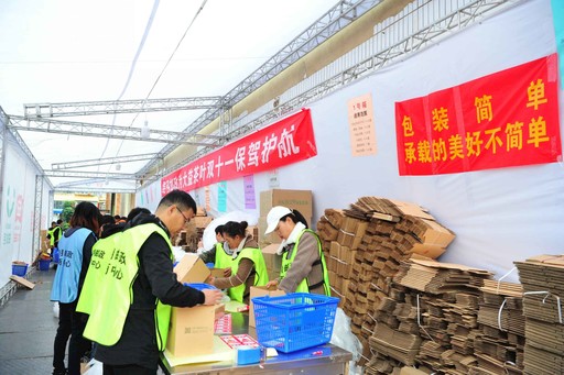 云南省大益普洱茶一直以來是“雙11”天貓茶行業(yè)的“銷量王”。經(jīng)過4年的深度合作,今年“雙11”,昆明市郵政分公司成了大益普洱茶唯一快遞服務(wù)商。截至11月11日10點(diǎn)30分,大益普洱茶訂單量超過12萬件。圖為昆明市分公司員工為客戶提供分揀、理貨、打包、運(yùn)輸?shù)热h(huán)節(jié)服務(wù)。□云南記者 楊曉穎 攝影報道