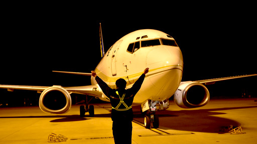 11月11日凌晨,中國郵政航空公司南京分公司機務人員正在引導飛機入位?!鮿⒘⒚?nbsp; 攝影報道