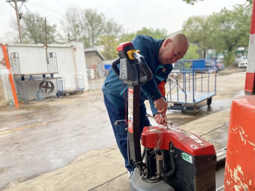 老陳叫陳勁松,是南京郵區中心局運行維護中心的一名班組長,也是一名老黨員。就在幾個月前,由于兄弟班組班組長突發疾病,他所在的駕修班組和機電班組合并成了一個團隊,自此陳勁松身上的擔子更重了。筆者問陳勁松到底負責多少設備的維修?他如數家珍:“小平板車600多輛、大平板車300多輛、電動叉車5輛、柴油叉車9輛、地牛25輛……對了,還有一樞紐、二樞紐、空港中心的水、電設備。”