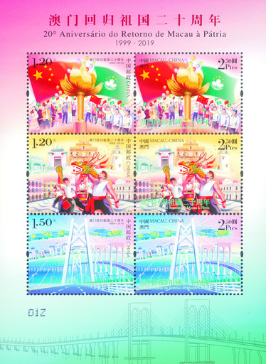 12月20日是澳門回歸祖國二十周年紀念日。20年來,澳門特別行政區政府團結社會各界人士,全面準確理解和貫徹“一國兩制”方針,堅定維護憲法和基本法權威,傳承愛國愛澳的核心價值觀,促進澳門經濟快速增長、民生持續改善、社會穩定和諧,向世界展示了具有澳門特色的“一國兩制”成功實踐。為記錄這一重要時刻,中國郵政于當日發行《澳門回歸祖國二十周年》紀念郵票一套3枚。