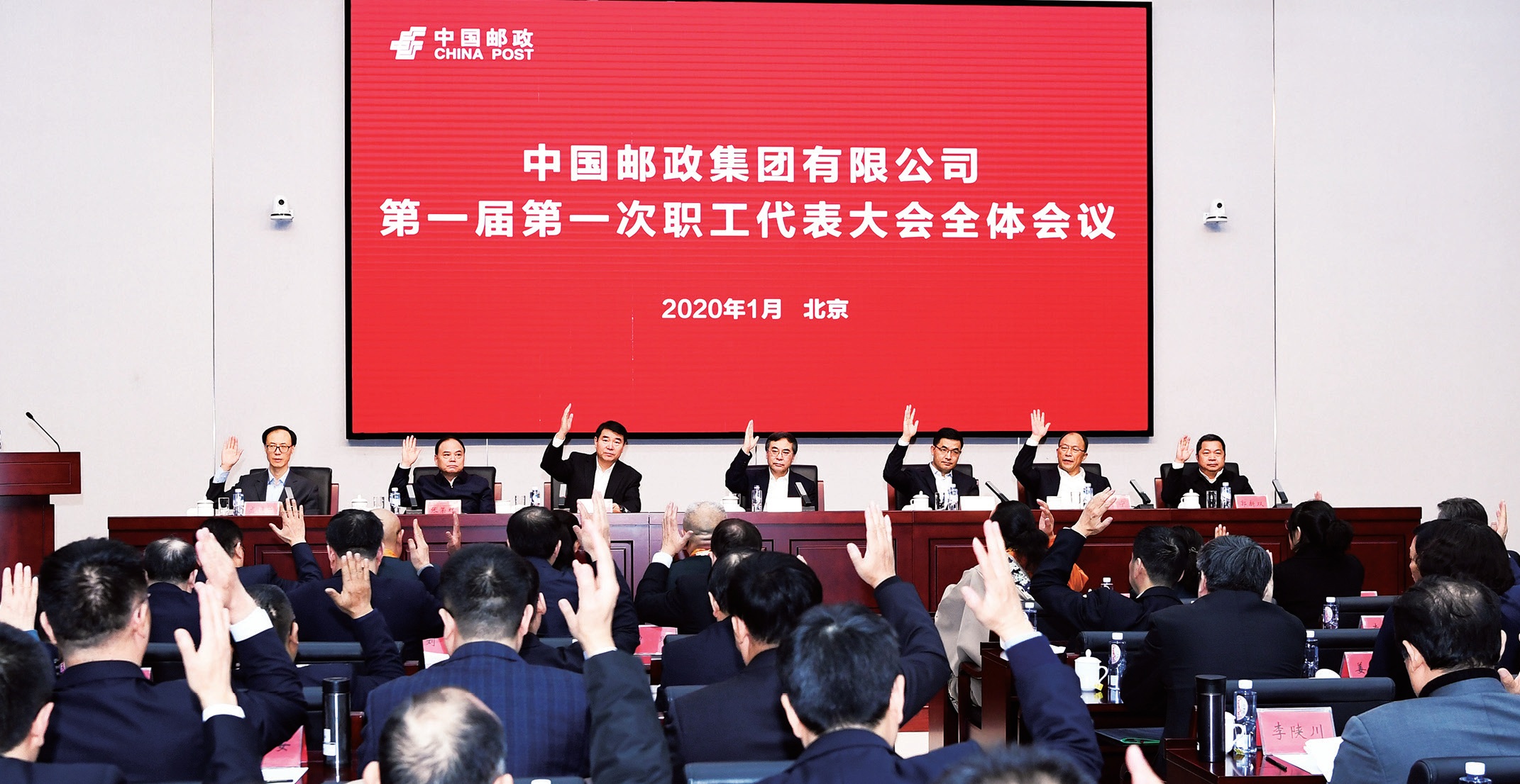 1月6日,中國郵政集團(tuán)有限公司一屆一次職工代表大會在北京開幕。在家集團(tuán)有限公司黨組成員出席會議,集團(tuán)有限公司黨組書記、董事長劉愛力發(fā)表講話。集團(tuán)有限公司黨組副書記、工會主席李丕征主持會議。