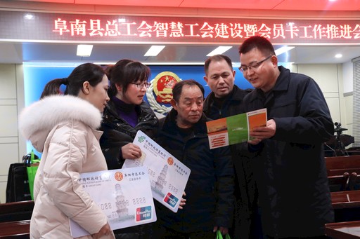 1月8日,郵儲銀行安徽省阜南縣支行聯(lián)合縣總工會,舉行了智慧工會建設暨會員卡工作推進會。該會員卡免費向全縣工會會員發(fā)放,集工會幫扶服務、優(yōu)惠購物消費、金融理財?shù)榷喾N功能于一體,持此卡可享受一元洗車、一元觀影、超市滿減、節(jié)日惠等優(yōu)惠。截至目前,該會員卡已發(fā)放2000張。圖為阜南縣支行工作人員在推介會員卡。□劉華武 張晨曦 攝影報道