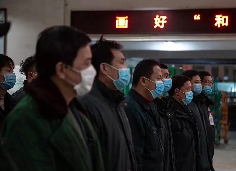 2月1日,武漢郵區中心局,上夜班的工作人員集合。這里目前24小時運轉,夜間也要處理數千件郵件。