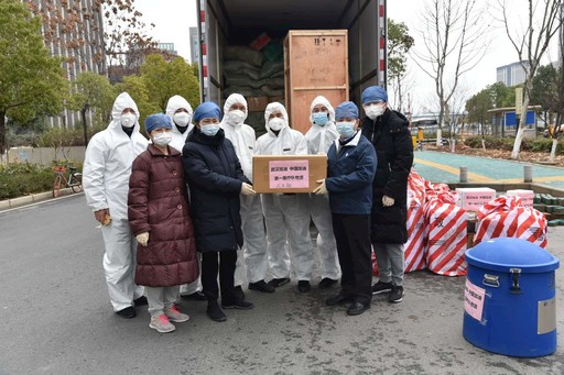 2月7日10:00,浙江大學醫學院附屬第一醫院傳染病診治國家重點實驗室委托浙江省郵政分公司通過綠色通道送往武漢的一批救援物資,經過17個小時、1111公里的“旅程”后,順利交給李蘭娟院士團隊。浙江郵政和湖北郵政的工作人員與李蘭娟團隊工作人員進行了物資清點、交接,李蘭娟院士(前排左2)也參與了物資接收,并對郵政細心、周全的服務工作稱贊道:“郵政速度快、服務好,你們連夜趕過來,感謝你們!”