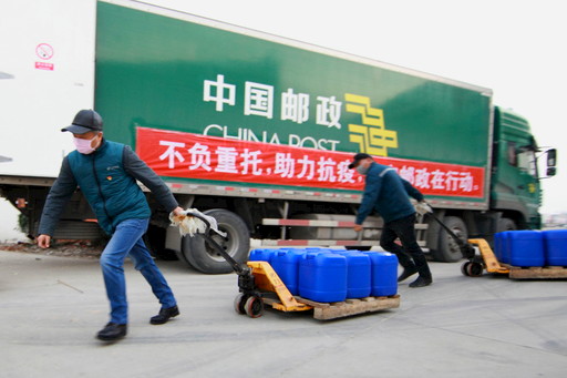 2月1日傍晚,江蘇省淮安市郵政分公司有一批防疫物資(12噸消毒液)發(fā)往武漢。在當(dāng)天的作業(yè)組織中,該分公司兩名黨員駕駛員李訓(xùn)林和余洪耀積極服從調(diào)度,在消毒液生產(chǎn)企業(yè)協(xié)助裝運,確保了物資出庫、裝車不間斷進行,為物資第一時間運送贏得了寶貴時間。經(jīng)過12小時的車程,2月2日8點,郵車到達受捐贈單位。交接物品結(jié)束后,二人啟程返回淮安,到達后直接到隔離點接受觀察。□吉爾云 劉春平 攝影報道