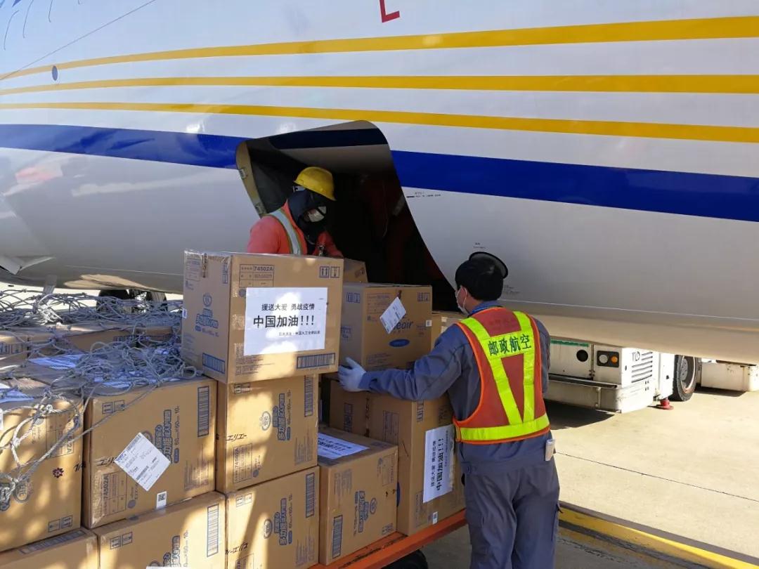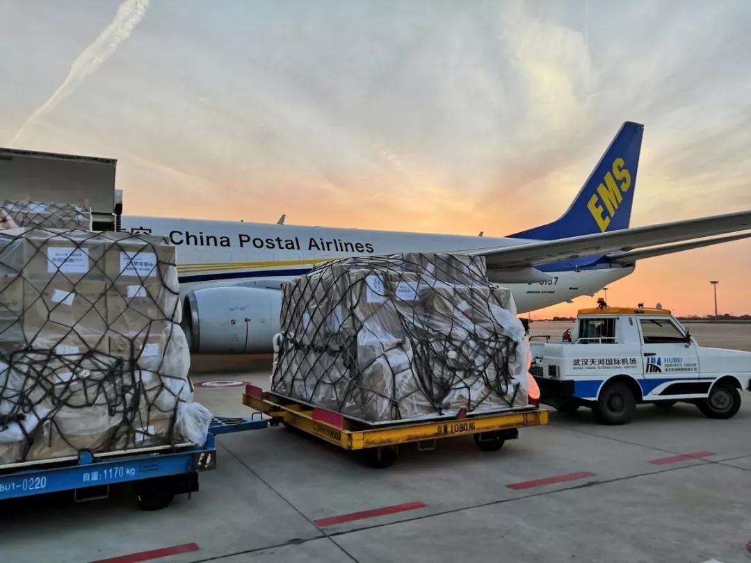 中國郵政第16班防疫物資寄遞專機抵達武漢