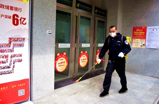連日以來,湖南省新寧縣郵政分公司積極配合政府部門,對新冠肺炎疫情防控工作抓實、抓嚴,每天對辦公場所消毒三次,確保人民生命安全得到保障。圖為該分公司保安人員正在對取款機室進行消毒。 石國興 攝影報道