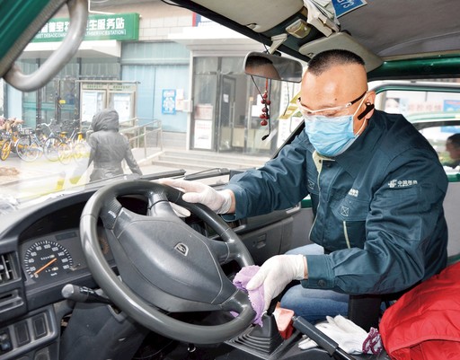 “開(kāi)水打濕,倒上酒精,先把手再方向盤……”2月25日9點(diǎn),汪洋一邊默念一邊給郵車消毒,準(zhǔn)備出班投遞。旁邊,西外大街支局局長(zhǎng)王磊目不轉(zhuǎn)睛地看著,生怕汪洋漏掉哪個(gè)步驟。見(jiàn)汪洋準(zhǔn)備完畢,王磊走過(guò)去遞上一張紙巾和一瓶酒精說(shuō):“汪師傅,您把紙巾墊在口罩里,護(hù)目鏡上就不會(huì)有哈氣了。這瓶酒精您揣兜里,用完了再和我說(shuō)。”