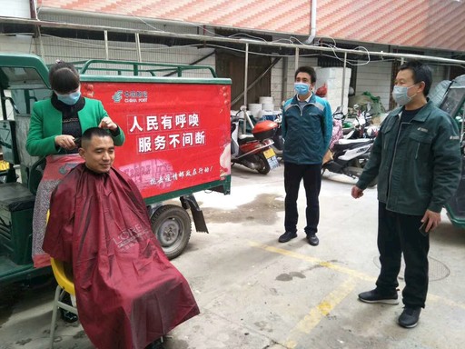 2月25日,一位志愿者理發師走進陜西省旬陽縣郵政分公司攬投部,免費為奮戰在崗位上的郵政員工理發。這位熱心的理發師是旬陽縣分公司郵運車司機何邦軍的愛人。經過嚴格的消毒和體溫測量后,她在攬投部辦公點建起臨時理發點,為有需要的20余名郵政員工理發?! 趵罾^芳 攝影報道