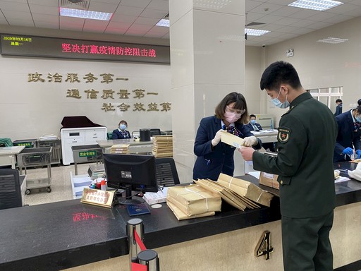 在采訪中,記者看到了北京機(jī)要局最近收到的兩封感謝信,分別來自武漢某部隊(duì)和北京市人民檢察院某分院。武漢某部隊(duì)感謝北京機(jī)要局對(duì)疫情防控文件的應(yīng)急處理工作。接到從北京寄往武漢某部隊(duì)涉及疫情的機(jī)要文件后,北京機(jī)要局第一時(shí)間與湖北省機(jī)要局溝通協(xié)調(diào),打破了僅工作日投遞機(jī)要件的常規(guī)處理模式,3小時(shí)內(nèi)將文件妥投到位。“當(dāng)疫情迅速蔓延之時(shí),你們克服各種困難,把我們所需的機(jī)要文件及時(shí)投遞,為我們研究擬制疫情處置方案發(fā)揮了作用,特向你們表示衷心感謝。”武漢某部隊(duì)在感謝信中寫道。