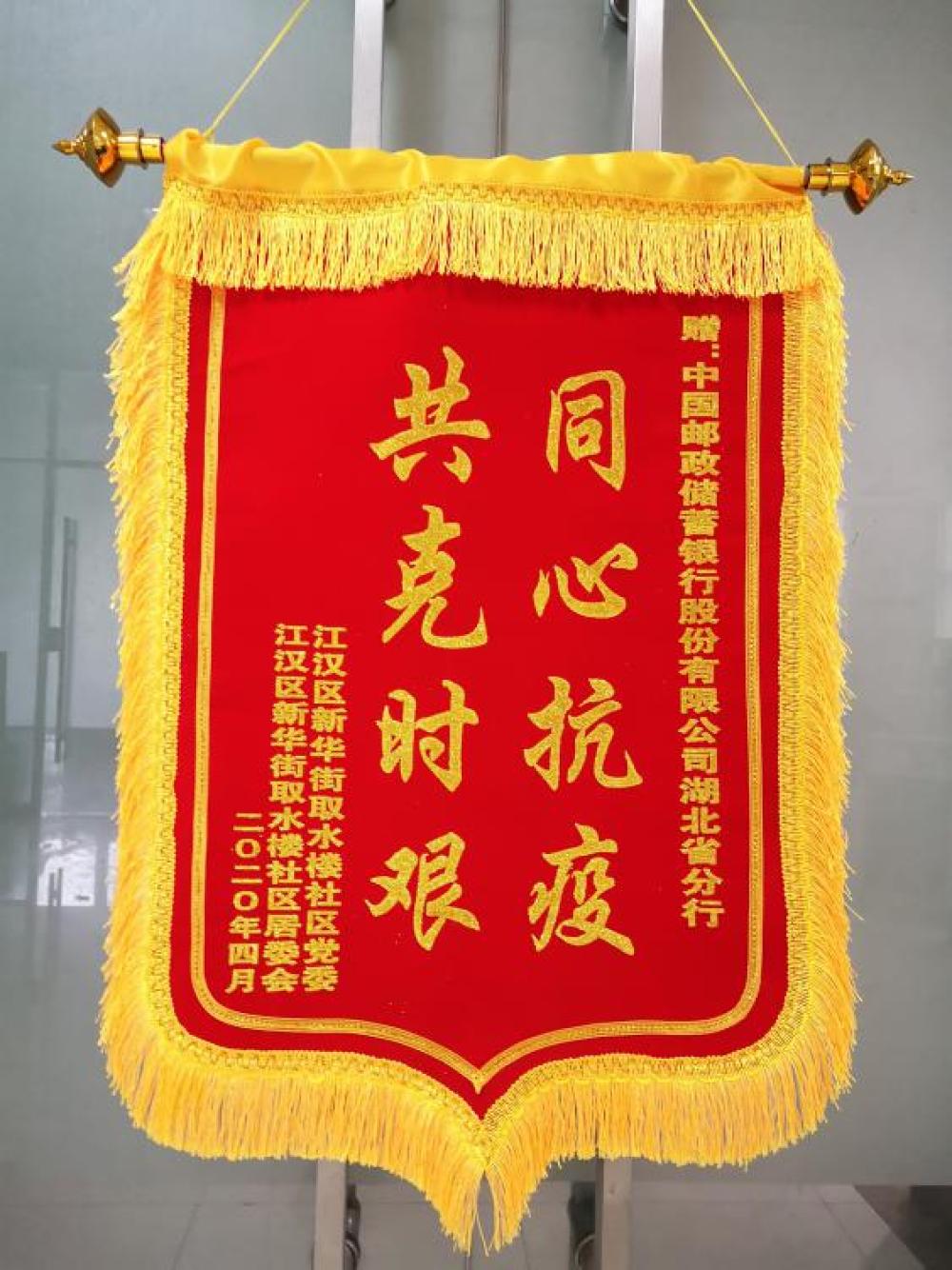 近日,江漢區(qū)新華路取水樓社區(qū)授予郵儲銀行湖北省分行黨員突擊二隊“抗疫”錦旗,表彰其在疫情期間與廣大社區(qū)居民“同心抗疫、共克時艱”的特殊貢獻(xiàn)。